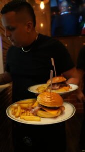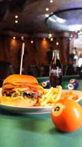 Disfruta de hamburguesas, bocadillos, snacks y la emoción de tus deportes favoritos en un ambiente moderno y acogedor.